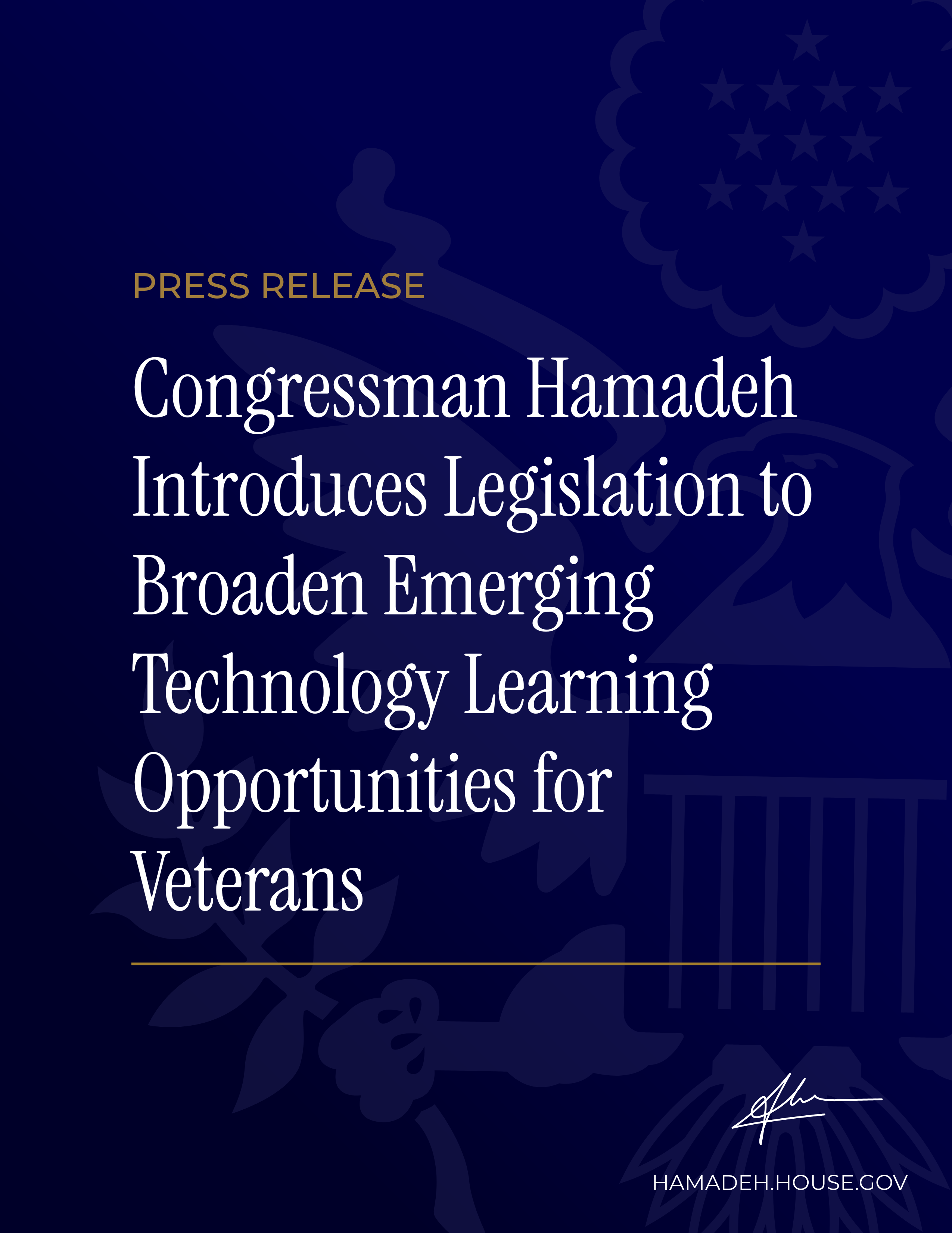 Congressman Hamadeh Introduces Legislation to Broaden Emerging Technology Learning Opportunities for Veterans