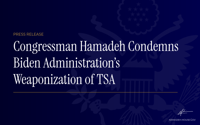 Congressman Hamadeh Condemns Biden Administration’s Weaponization of TSA