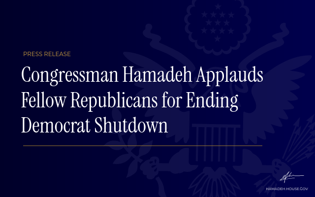Congressman Hamadeh Applauds Fellow Republicans for Ending Democrat Shutdown