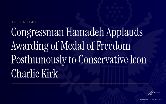 Congressman Hamadeh Applauds Awarding of Medal of Freedom Posthumously to Conservative Icon Charlie Kirk