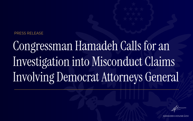 Congressman Hamadeh Calls for an Investigation into Misconduct Claims Involving Democrat Attorneys General