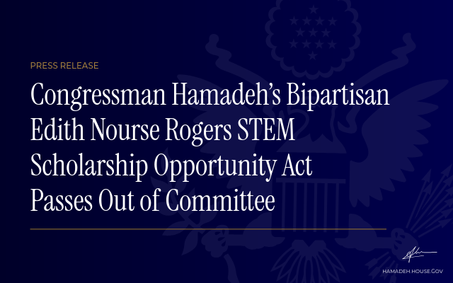 Congressman Hamadeh’s Bipartisan Edith Nourse Rogers STEM Scholarship Opportunity Act Passes Out of Committee
