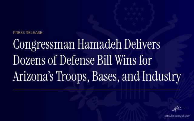 Congressman Hamadeh Delivers Dozens of Defense Bill Wins for Arizona’s Troops, Bases, and Industry