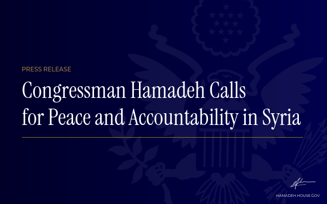 Congressman Hamadeh Calls for Peace and Accountability in Syria