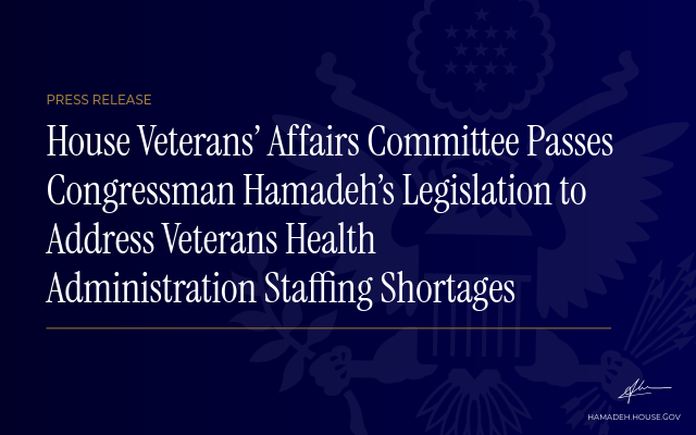 House Veterans’ Affairs Committee Passes Congressman Hamadeh’s Legislation to Address Veterans Health Administration Staffing Shortages