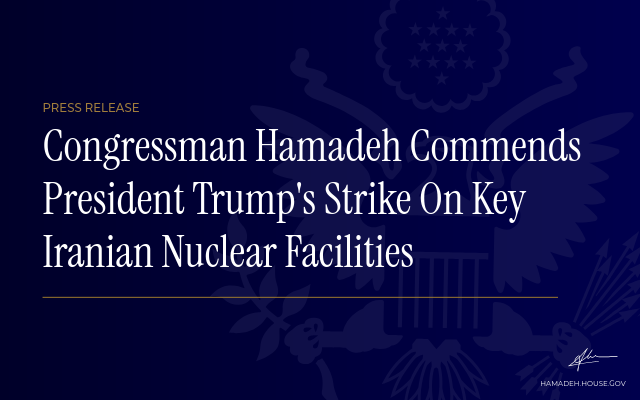 Congressman Hamadeh Commends President Trump's Strike On Key Iranian Nuclear Facilities