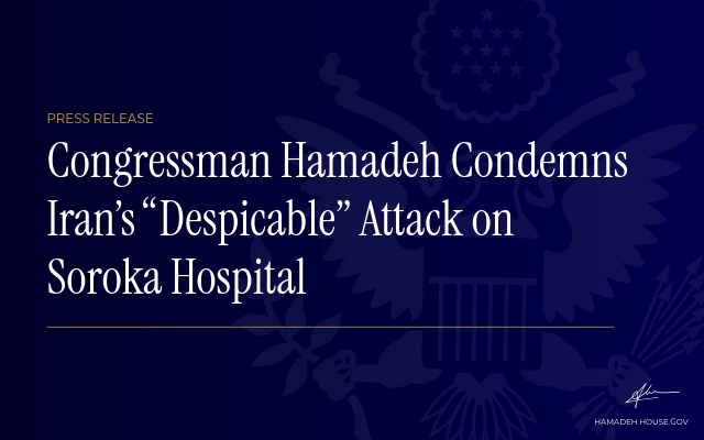 Congressman Hamadeh Condemns Iran’s “Despicable” Attack on Soroka Hospital