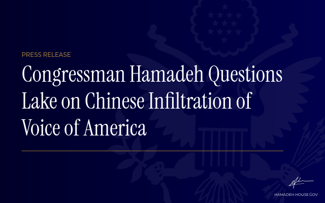 Congressman Hamadeh Questions Lake on Chinese Infiltration of Voice of America