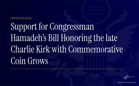 Support for Congressman Hamadeh’s Bill Honoring the late Charlie Kirk with Commemorative Coin Grows