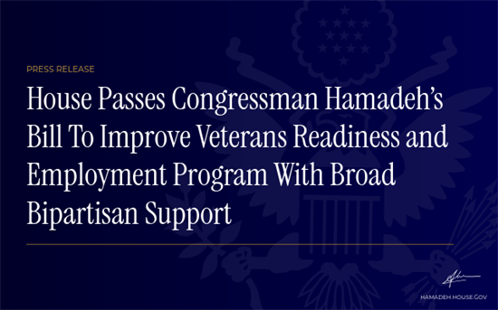 House Passes Congressman Hamadeh’s Bill to Improve Veterans Readiness and Employment Program with Broad Bipartisan Support