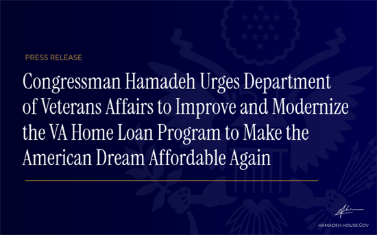 Congressman Hamadeh Urges Veterans Affairs to Improve and Modernize the VA Home Loan Program to Make the American Dream Affordable Again